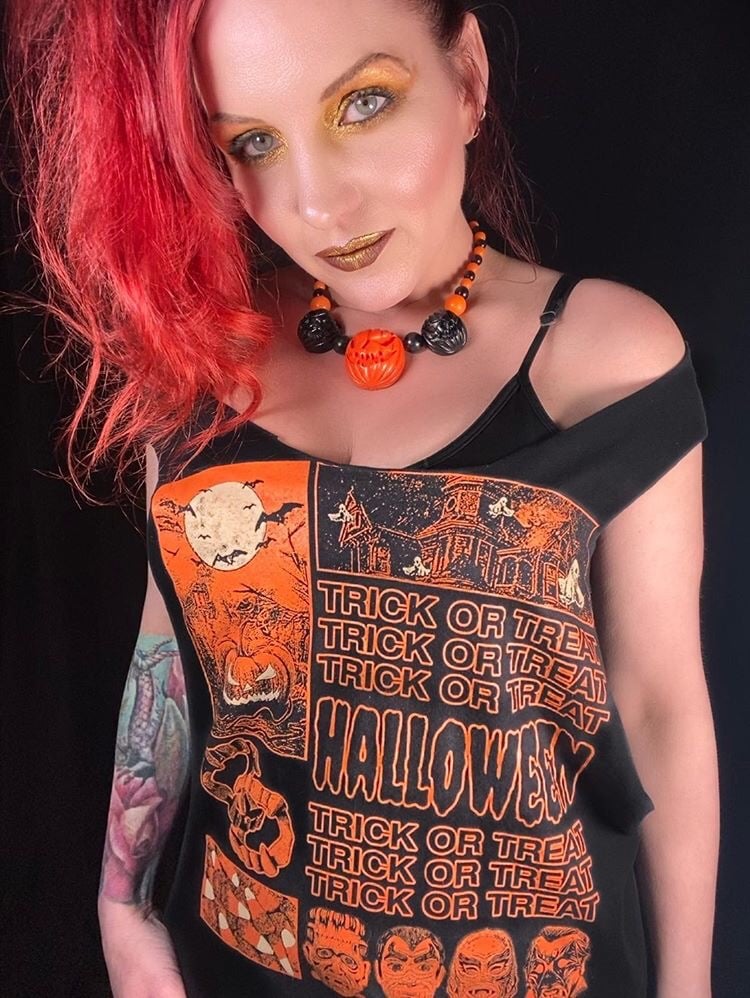 All you spooky kids that love halloween as much as me... this tee is a must see. created for those who love, live and have the halloween spirit in their hearts....this 80s / vintage inspired design harkens some familiar figures which bring about a joy and feeling of this magnificent holiday... which just doesn't happen once a year but lives in each and everyone one of us...